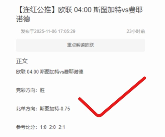 昨日公推斯图加特再次成功拿下!近期公推继续连红!私厨方面!超级王牌皇家贝蒂斯稳稳拿下近17中16!今日PP有料团队调整状态继续奉上足球赛事/澳超等精选赛事!同时想了解更多详细内容可添加下方客服!