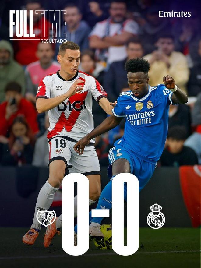 西甲第12轮,皇家马德里客场0-0战平巴列卡诺,这是皇马自2023年5月以来首次连续两场没进球。